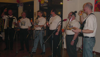 Stimmungsvoller Einzug mit PrinzenpaarAuch in diesem Jahr ließen die Honrather Chöre es sich nicht nehmen alle Freunde des karnevalistischen Treibens zum Kostümball ins Peter-Lemmer-Haus einzuladen. Ein selten stimmungsvoller Einzug gelang mit dem überaus beliebten Lohmarer Prinzenpaar Heinrich III und Marlene I (Fam. Löffelsender). Mit einem ca. 20 Personen starken Gefolge eröffnete das aus Neuhonrath stammende Prinzenpaar mit Einmarsch die Veranstaltung im vollbesetzten Lemmer-Haus. Nach der Begrüßung durch die Chorvorsitzenden Rita Peters (Frauenchor Harmonie) und Lothar Peters (MGV Honrath) sangen die eingeladenen Gäste gemeinsam mit dem Prinzenpaar die stimmungsvollen Karnevalslieder der rheinisch-kölschen Region. ![]() Elli Roth, trotz hohen Alters nie müde werdende Büttenrednerin, gefiel besonders mit der Rede "Et Trienche vom Wöngtesch"(Winterscheid). ![]() Zwischen den Auftritten traten die Chorvorsitzenden und Lisa Becker mit kleinen Witzparodien auf. Nä wat is dat he schön ..., Apropo Papa..., Umweltschutz... gehörten zu den Launemachern der Moderatorin. ![]() Eingeladen waren auch das Tanzcorps "Altenrather Sandhasen", die mit einer gekonnten konditionsraubenden Tanzshow zu gefallen wußten. ![]() Walter Oberdörster, ein Talent der Büttenrede, darf natürlich nicht fehlen. Sein Auftritt unter dem Motto: "Ne Sänger, der vom Wettstreit küt", war eine besondere Lachnummer, die viel Beifall brachte. ![]() Eine schöne Darbietung boten die "Jacob - Sisters", von Lore Schlehecker, Veronika Hahn, Elisabeth Kremer und Rita Peters im orginellen Kostüm vorgestellt (Leitung Rita Peters). ![]() In großem karnevalistischem Aufwind befindet sich das Sextett "De Kammerberger" mit Walter Oberdörster, Karl-Otto Lindenberg, Uwe Demski, Siegfried Gronau, Wolfgang Hilleke und Lothar Peters. Mit bekannten, teils umgedichteten rheinischen Karnevals-reißern entfachten sie im Jeckensaal ein unaufhaltsames Stimmungskarussel und immer wieder kam die Aufforderung, das Liedrepertoire noch auszudehnen. ![]() Rita Peters trat dann noch mit der von Lore Schlehecker, Tessy Weber, Michaela Bretschneider, Regina Schmitz, Elisabeth Kremer und Veronika Hahn gestellten Tanzgruppe auf. Eine mitreißende Vorstellung, die, in Schauspiel und Mimik gelungen, auch viel Applaus bekam. Für die musikalische Unterhaltung des Abends sorgten außerdem Werner Krengel am Keyboard und Wolfgang Hilleke (Musik und Tontechnik). Die Honrather Chöre bedanken sich bei den zahlreich erschienen Gästen für die Unterstützung der Vereinsarbeit und den Akteuren für die aufwendige Vorbereitung der Vorträge und Darbietungen, die in hohem Maße zum Gelingen der Karnevalsveranstaltung beigetragen haben. |