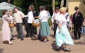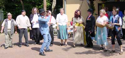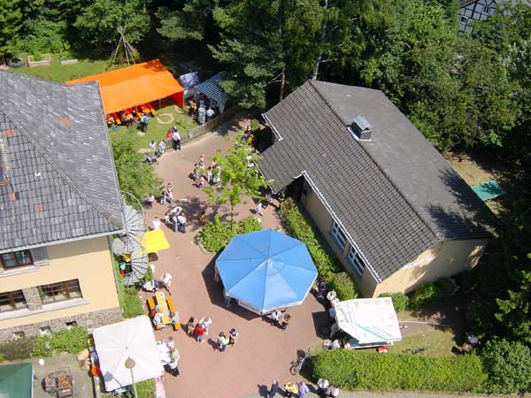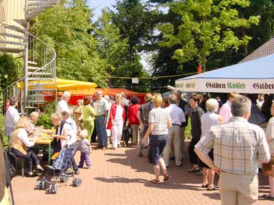 Frau Wanner, Leiterin des Kinderchores der evangelischen Kirche, stellte den musikalischen Nachwuchs mit schönen Liedern vor. Besonders schöne Stücke nach einfallsreichen Ideen schmiedete der Hufschmied Remerscheid auf Bestellung für die Gäste. Attraktion des Nachmittags waren besonders die Aufführungen des Löschzugs Wahlscheid der freiw. Feuerwehr Lohmar mit Leiterwagen. Eine Löschdemonstration eines Fettbrandes in der Haushaltspfanne mit Einweisungen des Zugführers der Feuerwehr fand besonderen Anklang, weil die Gäste sich auch versuchsweise an der Löschdemonstartion "Wasser ins heißes Fett " beteiligen konnten. Auch die Drehleiter wurde mit Gästen hochgefahren, ein Gefühl der Arbeit der Feuerwehr in schwindelnder Höhe zu vermitteln. |