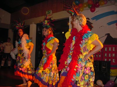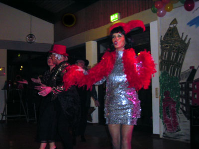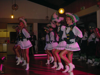 Am 22. Februar 2003, fast pünktlich um 19.11 Uhr, startete in dem toll karnevalistisch dekorierten Peter-Lemmer-Haus eine sehr hinreißende Show unter der charmanten, ideenreichen und witzigen Leitung von Lisa Becker. Nach einigen begrüßenden Worten der Vereinsvorsitzenden, Rita und Lothar Peters, ging es richtig los. ![]() Der erste Höhepunkt war eine Einladung ins Kabarett, einstudiert von Lisa Becker und hervorragend vorgetragen von den Sängerinnen Lisa, Hannelore, Silke, Tessy, Marion, Brigitte - nicht zu vergessen das Nummerngirl Anita - des Frauenchors Harmonie. ![]() |