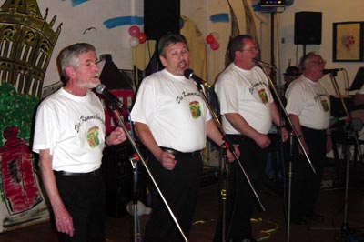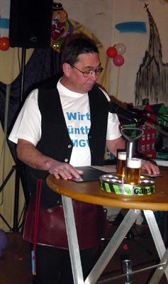 ![]() Der nächste Vortrag "Ne Schutzmann" von Hans Boschbach, einem fördernden Mitglied des MGV, brachte den Zuhörern tiefgreifende Erkenntnisse über die schwierige Arbeit eines Schutzmannes. Unter anderem muß aber auch erwähnt werden, dass er den Gästen anbot sich an dem Füllen des Promilletütchens, falls es die Höchstgrenze nicht erreichen sollte, aushelfen wollte. Dann stürmte die Tanzgruppe "Grün Weiß Wahlscheid" mit wunderschönen Einlagen den Saal. Ihr erster Auftritt unter Neonlicht war eine moderne Tanzaufführung. Es folgte - natürlich mit dem entsprechenden Outfit - ein Can Can, bei dem die Beine ordentlich in Bewegung kamen. Selbstverständlich war anschließend ein karnevalistisches Tanzen fällig. Auch hier war eine Zugabe unumgänglich, bei der alle Tänzerinnen mitwirkten. ![]() Und dann kam Walter Oberdörster mit seinen Erfahrungen über "Ener dä affjenomme hät". Dies muß ganz schrecklich gewesen sein. Vor allen Dingen, wenn man bedenkt, dass seine Frau im Schlaf murmelt "Ich liebe dich" und ihm dann, nachdem er ihr sagt "Ich bin ja da" mitteilt "Nicht Du bist gemeint - ich habe gerade von einem wunderschön gebratenen Truthahn geträumt". ![]() Aber jetzt wurden wir von Brigitte in ein mit dicken Sitzkissen ausgestattetes orientalisches Cafe entführt. Nachdem Schleier um Schleier gefallen waren, wurde ein absolut gekonnter Bauchtanz mit allen Raffinessen vorgeführt. Der Saal brodelte! ![]() Nun wagte sich "Dä Weet vom MGV" - Günther - auf die Bühne. Er informierte das närrische Publikum nicht über den Probegesang, dafür aber ausführlich und witzig über das Vereinsleben an der Theke. Auch darüber, welche Schritte er unternehmen und welchen Tests er sich unterziehen mußte, um an dieses Amt zu gelangen. ![]() Dann kamen "Die Kammerberger" und zwar Walter, Karl-Otto, Siegfried, Lothar und Wolfgang zum Einsatz. Wolfgang, der hier die Leitung übernommen hatte, begleitete die Band natürlich mit seinem Akkordeon. Gebracht wurden sehr schmissig "Bekannte Lieder der Bläck Fööss". ![]() Musikalisch begleitet von "Walter Krengel" wurde nun das Tanzbein aller Gäste bis in die frühen Morgenstunden geschwungen. |