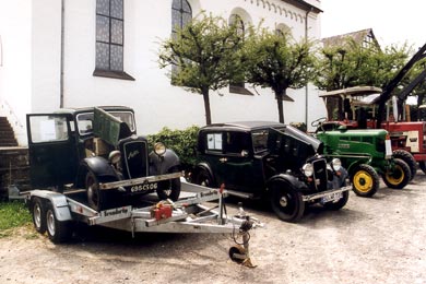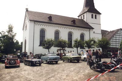 Angeregt unterhielten sich die von Günter Maylahn eingeladenen Aussteller und Interessenten untereinander, tauschten Erfahrungen aus, wo wohl noch das ein oder andere Ersatzteil zur Restaurierung zu haben ist. Gelungen war die Ausstellung eines "Austins" von 1937 und im Kontrast daneben, tadellos restauriert, ein Traummodell aus dem gleichen Jahr. Viele Gäste konnten so ihre eigenen Erstmodelle der Nachkriegszeit noch mal bewundern und nachdenklich Revue passieren lassen, wie man früher Felder bestellte oder mit der heute auch älter gewordenen Lebenspartnerin begeistert per Motorrad einen Ausflug machen oder zum Tanz fahren konnte. Das Fest begann traditionsgemäß mit dem Gottesdienst in der Burgkirche, diesmal ein schön gestalteter Kindergottesdienst, musikalisch begleitet vom MGV Honrath mit "I'm going up", "Gott nur allein" und "Er hält die ganze Welt". Eine schöne Pfingstmission aus Jerusalem wurde von den Kindern unter Leitung der Organistin, Frau Wanner und der Pastorin, Frau Pflümer im Gottesdienst aufgeführt. Gegen 11.30 Uhr begann dann der Frühschoppen auf dem Festplatz, musikalisch untermalt mit dem stimmungsvoll aufgelegten Spielmannsensemble "Die Oldies"aus Overath ,unter Leitung von Hermann Pateè. |