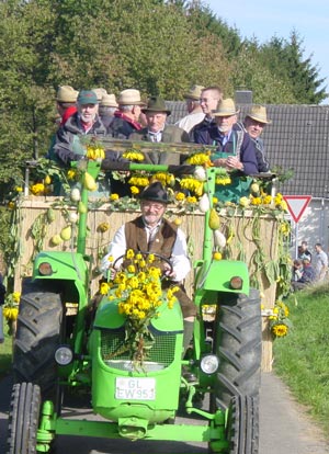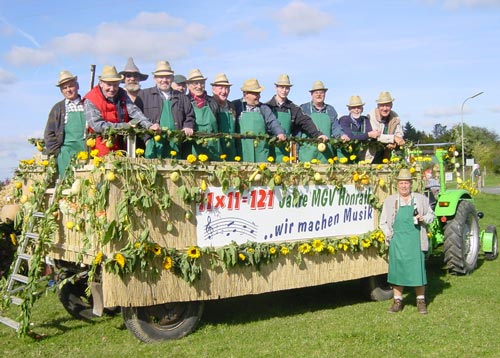 Mit eigenem großen Wagen beteiligte sich der MGV dieses Jahr am Erntezug des Bergischen Heimatvereins Oberschönrath. |