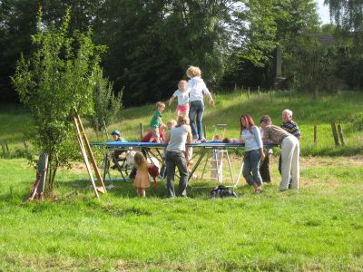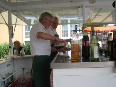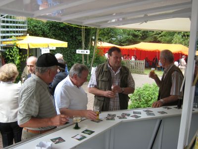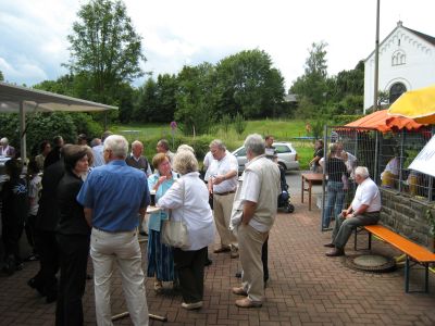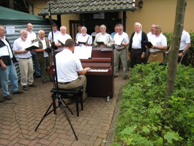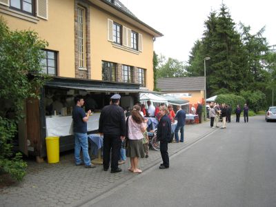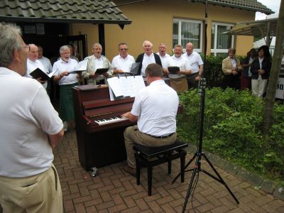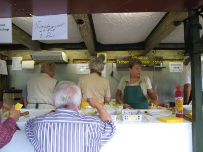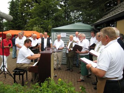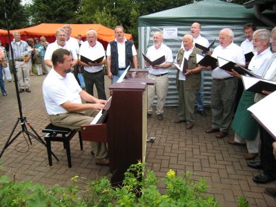 "Honrather Pfanne" ist KultChöre richten seit mehr als 20 Jahren Familienfest ausLOHMAR-HONRATH. Vor vielen Jahren gab es mal eine Honrather Kirmes. Jetzt, so Lothar Peters, Vorsitzender des Männergesangvereins "Eintracht" Honrath , gibt es den "Honrather Sonntag". Und das seit mehr als zwanzig Jahren. Rund um die alte Schule hatten die Sänger der "Eintracht" und die Damen der "Harmonie" wieder ein Programm für Groß und Klein auf die Beine gestellt: Mit Trampolin für die Kinder über Spiel und Spaß auf dem Gelände des Kindergartens bis zu Leckereien wie der "Honrather Pfanne" war reichlich geboten. Honrather Pfanne? Vor ungefähr zehn Jahren "erfanden" die Damen des Chores den leckeren Eintopf. Es sollte, erklärt Peters, schließlich nicht immer das selbe geben, die gleichen Gerichte. "Also haben die alles in den Topf geworfen, dessen sie habhaft wurden - herausgekommen ist die Honrather Pfanne". Inzwischen hat sich das Gericht zur Tradition entwickelt, ein "Honrather Sonntag" ohne die "Pfanne" scheint nicht mehr vorstellbar. Mit dabei natürlich die beiden Chöre, die mit einem breiten Repertoire die Honrather und ihre Gäste unterhielten. Besondere Attraktion: Hufschmied Bernd Remerscheid, der mit mobiler Esse und Amboß glühendes Eisen verarbeitete. Allerdings, so Peters, plagen auch die Honrather Sänger Nachwuchssorgen. Das Durchschnittsalter der zur Zeit 27 Aktiven liegt immerhin bei 63 Jahren. Weitere Informationen und Kontakt zum MGV "Eintracht Honrath" gibt es im Internet unter www.mgv-honrath.de (top) hier noch einige Bilder von PF |