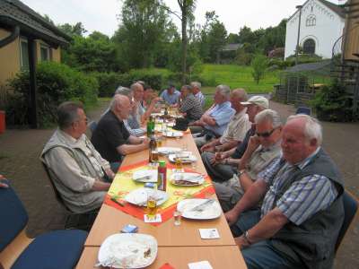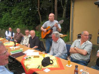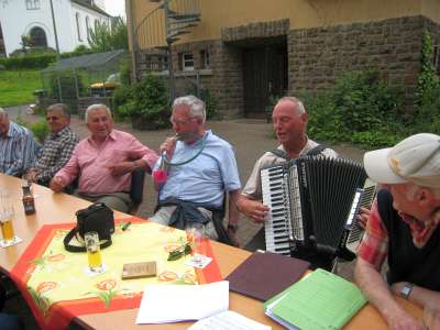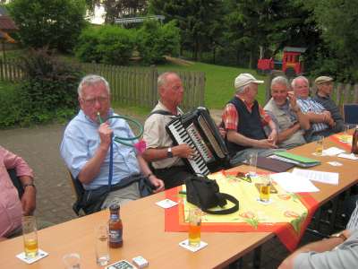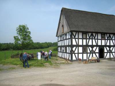 MGV wandert zum Freilichtmuseum LindlarTraditionell wandert der MGV Eintracht Honrath zu Vatertag im Bergischen Land. Doch diesmal hatte sich der Festausschuss des Chores für kulturelle Weiterbildung entschieden. Mit fünf Pkws wurden 20 Sänger in die Nähe des Bergischen Freilichtmuseums Lindlar gebracht, um an Gebäuden und Gebrauchsgegenständen der alten Zeit, in Landwirtschaft und Handwerk, Erinnerungen wach zu rufen. Interessant war für viele der älteren Sänger funktionsfähige Geräte und Gebrauchsgegenstände vorzufinden, die man teilweise vor Jahren noch selbst in Gebrauch hatte. Liebevoll ist hier nach mühevoller Restauration an Daten die Vergangenheit von Gebäude und Gerät dokumentiert und die Lebensgewohnheiten der Bewohner der damaligen Zeit nachvollziehbar dargestellt. Gartenanlagen mit Basismaterial alter Kulturpflanzen, seltene Tierarten, u.a. Kaltblutpferde und seltene Kuhrassen, stehen hier unbeschwert auf saftigen Weiden. Webereien, Seilereien, Schmiede und Schreinereien werden nach Anlaufplan des Museums funktionsfähig vorgeführt. Die Geschichte des Maschinenzeitalters und der schnelle Fortschritt wird besonders an der Ausstellung der alten Dampfmaschine und Traktoren bis zur Neuzeit deutlich. Auch ganze Fachwerk-Hofanlagen aus dem Honrather Raum sind wieder aufgebaut und alte Wohnungen mit Inventar zu besichtigen. Ein gut besuchtes altes Restaurant bietet nach langem Rundgang im Museumsbereich schmackhafte Menüs und Getränke an. Besonders für Eltern mit Kinder wird während der Besichtigung die Möglichkeit geboten auf dem Spielplatz im Museumsbereich Beschäftigung für die Kinder zu finden. Zurück am Sängerheim angekommen, kam wie gewohnt der gemütliche Abschluss mit Grill und Getränken bis zum späten Abend. Gut unterhalten wurden die Sänger mit musikalischen Einlagen am Schifferklavier mit Wolfgang Hilleke und Uwe Demski mit Gitarre zu bekannten Volksliedern und Stimmungsliedern von Ostermann. Die Sänger bedanken sich noch mal bei den Organisatoren des kleinen Ausflugs zum Bergischen Freilichtmuseum. |
