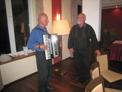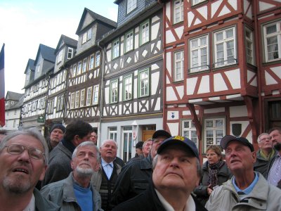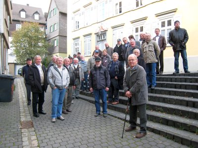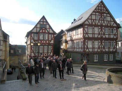 Musikalischer Intensivkurs des MGV Eintracht mit Projektchor im hessischen SchottenEin Ausflug des Männerchors kombiniert mit einem Probewochenende, geplant vom Festausschuß mit Bernd Esser und Siegfried Gronau, führte nach Schotten ins Hotel "Haus Sonnenberg". Der hohe musikalische Anspruch an das große Herbstkonzert des Projektchors machte es notwendig, ein zweitägiges Probewochenende zu organisieren. Mit dem Kinder- und Jugendchor Lohmar (Leiter - Rudolf Wingenfeld) und dem Hornsextett der Robert Schumann Musikhochschule Düsseldorf (Leiter - Prof. Joachim Pöltl) wird das Chorprogramm mit weiteren großartigen Interpreten an Atrraktivität gewinnen. Schon um 06.30 Uhr war der Chor unterwegs und begann um 10.00 Uhr die erste Probe im Hotel-Restaurant mit bekannten musikalischen Variationen aus Wald, Jagd und Wein. Nach einem kleinen Mittags-Imbis folgten die weiteren Probearbeiten. Gerade wegen des hohen musikalischen Anspruchs, mit großartiger Konzertbesetzung, will der Chor sich gut vorbereitet seinem Publikum vorstellen. Gemütlichkeit wird im Chor auch auf Chorreisen groß geschrieben. Stimmungsvoll, musikalisch untermalt, ging es deshalb nach der Probe auch in der Chorgemeinschaft zu, als Wolfgang Hilleke, Uwe Demski, Günter Müller und Karl Heinz Merten instrumental mit Akkordion, Gitarre und Mundharmonika, mit Rheinischen Liedern und Karnevalschlagern für einen schönen musikalischen Abschluß sorgten. Nach einer zweistündigen Probe am zweiten Tag wurde auf der Rückreise noch eine Stadtbesichtigung von Wetzlar gemacht. Eine Führerin erklärte die interessante Stadtgeschichte und führte zum Marktplatz, wo die Möglichkeit bestand auf dem Festplatz noch einen kleinen Imbiss einzunehmen. Zum Ende des Ausflugs hatte der Chor noch zum gemütlichen Beisammensein mit Abendessen ins Restaurant "Auler Hof" in Wahlscheid eingeladen. Die Sänger bedanken sich bei den Organisatoren des Probenwochenendes und auch beim Busfahrer für das "Nachhausebringen" nach dem Aufenthalt in "Auler Hof". |