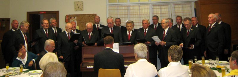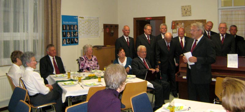 Traditionsgemäss werden Ehrungen von Sangesbrüdern im Rahmen eines gemütlichen Abends, zusammen mit den Partnerinnen der Sänger vorgenommen. Dieses Jahr konnten wir dem Sänger Siegfried Rieß zur 50-jährigen Vereinszugehörigkeit mit Ernennung zum Ehrenmitglied gratulieren. Nach der Begrüßung der Anwesenden durch den 1. Vorsitzenden wurde die Ehrungen vorgenommen. Anschließend sang der Chor unter Leitung seines Chorleiters Rolf Pohle vier Lieder und das Hoch zu Ehren des Jubilars. Das köstliche Essen (Rinder- und Schweinebraten, verschiedene Gemüse und Salate, Spätzle, Kartoffel und Nachtisch) wurde von den Sängerfrauen Rita Peters und Anita Braesicke serviert. Für Getränke sorgten unsere Wirte Walter und Siegfried. Anschließend wurde noch lange bei gemütichem Plausch und guter Laune gefeiert. ![]() ![]() ![]() ![]() |