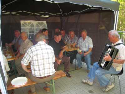 Vatertagswanderung ins unterirdische KölnDie traditionelle Wanderung fand diesmal nicht zu Fuß statt, sondern mit kulturellem Hintergrund mit der Citybahn nach Köln. Aktive und inaktive Mitglieder des MGV Honrath hatten sich der lehrreichen Führung mit Dr. Stucken ,auch Sänger im Kölner Männergesangverein, angeschlossen um die sehenswerten Ausgrabungen in der archäologische Zone (Praetorium )mit dem jüdischen Museum unter der Domplatte und dem Rathausplatz zu bewundern. Teile der mehr als 3 Meter dicken und mächtigen Fundamente der römischen Stadtmauer sind zu sehen. In diesem Bereich hatten die Römer ca. 50 n.Chr. schon ein technisch gut funktionierendes Wasserzufuhr (Eifelleitung 95 km lang) und Abwasserkanal (10 m unter der Erde) entwickelt, die in Teilen der Ausgrabungen auch zu sehen sind . Besonderheiten zur Funktion dieser Abwasseranlagen die zum Teil heute noch genutzten werden sind unter dem Ebertsplatz noch zu sehen. Ein Konzertsaalartiges unterirdisches Forum (Kristallsaal), kann für musikalische Veranstaltungen genutzt werden. Dr. Stucken erklärte die Bedeutung der Straßenlagen u.a. der Hochstraße, Schildergasse und Ringstraßen zu den Stadtmauertoren der Stadt und die daran orientierten baulichen Anlagen der Stadt. Sehenswert sind außerdem durch Ausgrabungen freigelegt das jüdische Ritualbad (800 n.Chr.), die Synagoge (8 n.Chr.) und das Ubiermonument ( Eckturm zur Befestigung der Stadt (10 n. Chr.). Unmittelbar mit diesen großartigen Funden verbunden nimmt man zwangsläufig immer Bezug auf die bauliche Entwicklung des Kölner Doms, der Karolinger- und später gotische Dom bis zur Fertigstellung, wie wir den Dom heute kennen (Bauzeichnungen 1300 -1500 n.Chr). Als wertvolle Freilagen unter der katholischen Kirche Groß St. Martin sind mächtige bis zu 9 Meter hohe Fundamente baulicher Anlagen der Römer wie u.a. das römische Schwimmbad zu sehen. Ein Blick in den Kellertrakt der de römisch-germanischen Museums zeigt den prachtvollen Mosaikteppich aus der Kaiserzeit Claudius und Agripina. Nach dem gemeinsamen Mittagessen im Gaffel, ging die Bahnfahrt zurück zum Sängerheim Honrath zum gemütlichen Beisammensein unter dem neuerstellten Pavillon bis in die späten Abendstunden. Die "Wanderer" bedanken sich noch bei den Organisatoren und Helfern für den ideenreich gestalteten Vatertag. Zurück am Sängerheim kam wie gewohnt der gemütliche Abschluss mit Speisen vom Grill und Getränken bis zum späten Abend. Die Sänger bedanken sich noch mal bei den Organisatoren. |