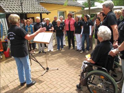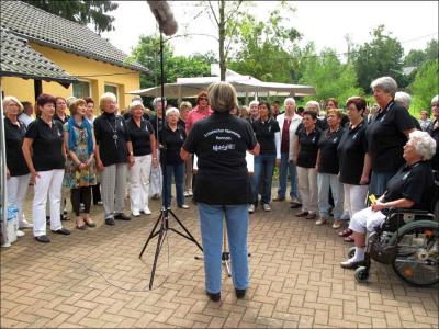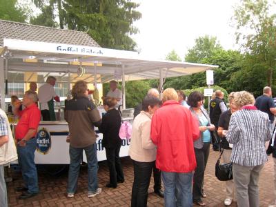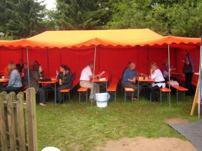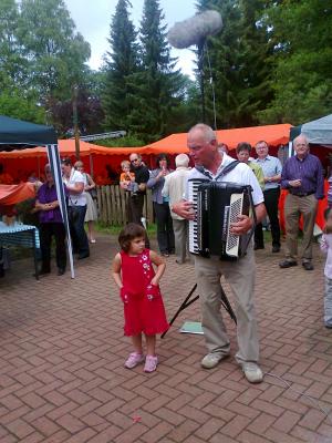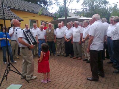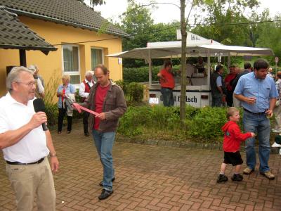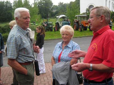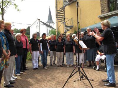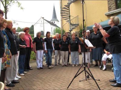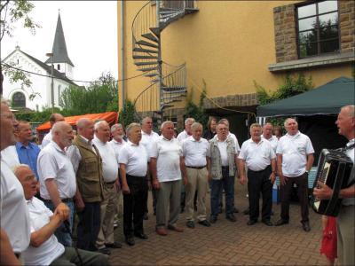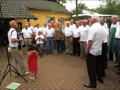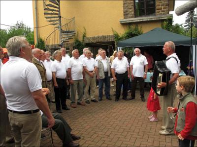 Neuer Festplatz - gemütlicher geht's nichtDie Wetterlage war nicht einladend gemeldet, aber Glück, zwischen den Regenperioden mit Sonnenschein, ließ das traditionelle Sommerfest doch gelingen. Trotz der attraktiven Paralellveranstaltungen, wie Fomel 1, 24 Stundenrennen am Nürburgring und Frauenfußball-Weltmeisterschaft, hatte das Sommerfest wieder viele Besucher. Besonders,wie angekündigt, war man wohl auch neugierig auf die Gestaltung des neuen Festplatzes unter der alten Honrather Schule. Die Bepflasterung durch die Stadt und die Neugestaltung des Sängerheims mit Hinterausgang bieten jetzt mehr Möglichkeiten den Festplatz für solche Veranstaltungen herzurichten. So konnten hinter dem Bereich der Schule, im Schatten der alten Bäume, ein neuer Pavillon und mehre Kleinzelte zur Beköstigung aufgebaut und vor der Schule neben dem "Großzelt" gemütlich hergerichtete Unterhaltungszelte wie u.a. für Tombola, Musik-und Unterhaltungsveranstaltungen aufgestellt werden. Auch die Kinderunterhaltung konnte während des Festes, mit Trambolin und an Geräten des Kindergartens, in dieser verkehrsberuhigten Zone problemlos sicher gestellt werden. Besondere begeisternde Unterhaltung war durch die Einladung der stimmungsvollen Musikensembles "Overather Oldies"und der Modern-Musikband "Die Schwartlappe" gegeben, in der auch der MGV-Sänger Uwe Demski mitspielt. Die Honrather Chöre MGV Honrath (Leitung Wolfgang Hilleke) und Frauenchor Harmonie, geleitet von Ulrike Pleuger, gaben am Nachmittag ihren musikalischen Beitrag in einem stimmungsvollen Repertoire zum Festtag. Ein interessanter Karaoke-Wettbewerb, ins Leben gerufen von Kollegen um MGV-Sänger Bernhard Esser, wurde für mutige Sänger zum aufregenden gelungenen Auftritt. Für Freunde nostalgischer Landmaschinen hatten sich wieder begeisterte Freunde der Oldies bereit erklärt, ihre bewundernswerten Traktoren auszustellen und mit Freunden dieses schönen Hobby`s zu diskutieren. Zwischen den Auftritten der Akteure sorgte Wolfgang Hilleke mit vielseitigem musikalischem Unterhaltungsprogramm aus der Musikbox für ein gemütliches Stimmungsbild auf dem Festplatz.Die besondere Wertschätzung des Honrather Sommerfestes ermutigt die Chöre, auch nach Aussagen der Festgäste, die traditionelle Gestaltung des Festes mit neuen Ideen weiterzutreiben. Die Chöre bedanken sich besonders bei allen Förderern und Helfern und den zahlreichen Festgästen, die zum Gelingen des Festes beigetragen haben. Besonders herausheben muß man die Arbeitsleistung unserer "alten Herren", die den Aufbau und Gestaltung des neuen Festplatzes mit vielen Arbeitstunden möglich gemacht haben. |