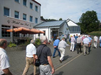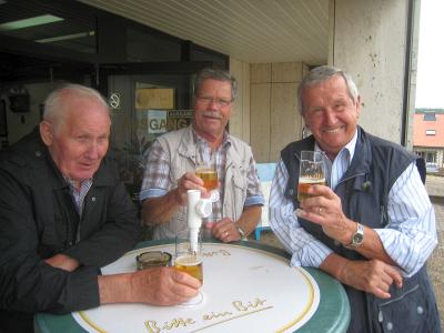 Mit 27 Sängern ging die Reise zunächst zum Laacher See, der vor ca. 12.000 Jahren nach einem Vulkanausbruch entstand. Nach einem gemütlichen Frühstück in der romantischen Blockhütte des Klosters wurde unser Reiseleiter in der kleinen Neustadt Manderscheid (15.00 Einwohner) aufgenommen, um uns während der Fahrt die Sehenswürdigkeiten und geschichtlichen Werdegänge der naheliegenden Dauner Maare Schalkenmehrener- Weinfelder- Toten- Pulver- und Holzmaar, (hier steht eine strategische wichtige Klimastation) zu erklären. Die unterschiedlichen, durch Vulkanausbrüche oder aufsteigendes Magma vor ca 8000 bis 12000 Jahren entstandenen Maare, sind unterschiedlich von 18-65 Meter tief und geben bis heute in der Entstehungsforschung immer noch Rätsel auf. Es war eine gute Idee des Organisationsteams um Walter Oberdörster und Siegfried Gronau, den MGV Eintracht in die Kulturlandschaft der Eifel mit zu nehmen. Wer denkt schon an eine seit 1620 bestehende weltweit bekannte Glockengießerei in Brockscheid bei Wallenborn. Cornelia Mark-Maas ist heute die einzige Glockengießermeisterin in Deutschland und damit die einzigartige Meisterin des guten Tons. Ein Glockengießer des Unternehmens unterrichtete die Sänger über die monatelang dauernden Abläufe bis zur fertigen Entstehung der Glocke. Unvorstellbarer Aufwand mit der geheimen Rezeptur der Eifeler Lehmgießmischung führt nur über die Hand der Meisterin zum tadellosen Glockenklang. Unterbrochen wurde die lehrreiche Vulkaneifelrundfahrt durch das reichhaltige Mittagessen im Hotel "Zur Post" in Deudesfeld. In Wallenborn wartete die nächste Attraktion, ein Kaltwassergeysir, auf die Sänger. In 35-minütigem Abstand schieß aus mehren tausend Metern Tiefe eine 4m hohe Grundwasser-Fontaine aus der Erde. Ganz unweit der bestaunenswerten Anlage stand die Besichtigung der Imkerei Mehler in Wallenborn an. Wir meinten, die Bienenvölker sind es wert geschützt zu werden. Beklagt wurde der hohe Ausfall von Bienevölkern, wahrscheinlich ausgelöst durch vermeidbare Umwelteinflüsse. Die Lebensgewohnheiten und Evolution der Honigbienen, erklärt vom Züchter, hinterlassen bestaunenswerte Eindrücke beim Zuhörer, wenn man bedenkt, dass dieses nur 0.2 g schweren Leichtgewichte in acht Monaten Lebenszeit als Honigproduzent eine Strecke abfliegt, die der dreifachen Umrundung der Erde entspricht. Spirituosen, Reinigungsmittel und Honigsorten wurden nach der Herstellungsbesichtigung im schön dekorierten Ausstellungsraum besichtigt. Die besonderen Vulkaneinflüsse auf Boden- und Gesteinszusammensetzungen bedingen auch die geschätzten Qualitäten der Mineralwasser der Hersteller der Südeifel dieser Region. An allen bestaunenswerten Besichtigungen rief Vizechorleiter Wolfgang Hilleke den Chor zum kleinen Stimmungslied auf. Während der Fahrt zu den Sehenswürdigkeiten sorgte Uwe Demski mit Gitarrenbegleitung für musikalische Unterhaltung. Ein schöner Tag fand seinen Abschluss im "Steinhof-Grill" in Overath bevor unser Busfahrer Peter jeden Einzelnen bis fast vor die Haustür heim fuhr. Die Sänger bedanken sich noch bei allen Organisatoren für die schöne Eifelfahrt . |