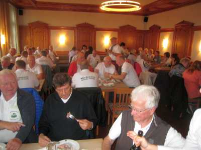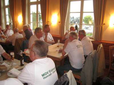 Die Sänger des MGV Eintracht Honrath und MGV Overath erlebten einen lehrreichen Ausflug ins nahe gelegene Urlaubsziel Attendorn und Siegerland. Man muss sich informieren, sonst kann man nur erahnen, was diese nahe liegende Region an Sehenswürdigkeiten zu bieten hat. Nach einem ausgiebigen Frühstück, in einem schönen am Biggesee gelegenen Restaurant, kam die erste Überraschung der 1907 entdeckten Atta-Höhle Attendorn. Eine Führung erklärte die Entdeckung und Entstehung der faszinierenden Welt der Stalagmiten (von unten nach oben wachsende Tropfenzapfen) und Stalagtiten (von oben nach unten wachsende Zapfen) und Stagmaten, die das zusammenwachsen der obengenannten Stalagmiten und Stalagtiten darstellen. In 10 Jahren wachsen diese Zapfen nur 1 Millimeter. Durch die Lichtanstrahlung wirken die verwinkelten Felsbuchten wie eine Krippengrotte in der mit Fantasie auch Figuren zu erkennen sind. Im Labyrinth sind etwa 5000 Meter der schätzungsweise 450 Millionen alten Grotte entdeckt worden, aber bisher nur 1500 Meter in bis zu 80 Meter Tiefe unter der Erde begehbar. info@atta-hoehle.de. Nach einem kleinen musikalische Auftritt vor dem Eingang der Atta-Höhle ging die Kulturfahrt weiter zum Technikmuseum Siegen-Freudenberg. Eine 100 Jahre alte Schmiede mit Arbeitsgeräten gilt als Sehenswürdigkeit und die 100 Jahre alte 100 PS starke Dampfmaschine, die über eine Transmission gleichzeitig 23 metallverarbeitende Arbeitsgeräte der damaligen Zeit antreibt und so viele Arbeitsplätze sicherte. Ein sauber ausgearbeitetes Motorenmodell der Titanic kann funktionierend vorgestellt werden. Funktionsfähige Geräte der Weberei, Leder-, Leim- und Filzverarbeitung waren im Siegerland zu Hause und sicherten mit weltweiten Exporten das Einkommen vieler Familien. Oldtimerfreunde können alte Arbeitsmaschinen, Motorräder, Traktoren bewundern. Auch im Siegerland wurde 1922 schon ein Motorrad gebaut mit Namen "Die Sieg". info@technikmuseum-freudenberg. Der gemütliche Teil durfte am späten Nachmittag nicht fehlen. Eine Besichtigung der Krombacherbrauerei in Kreuztal stand an. Eine umfangreiche Führung vermittelte uns die Braukunst in den einzelnen Produktionsabläufen für verschiedene Biersorten. Nach der Besichtigung waren die Gäste im brauereieigenen Restaurant eingeladen und konnten, bei leckerem westfählischem Schinken, alle Sorten des hier gebrauten Bieres genießen. Die MGV-Sänger gaben zum Abschied noch ein chormusikalisches Abschiedsgeschenk mit dem Stimmungslied "Das Bier, das macht den Durst erst schön". Der Chor bedankt sich bei Walter Oberdörster, dem Organisator des Ausflugs, für den lehrreichen Nachmittag. |