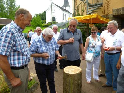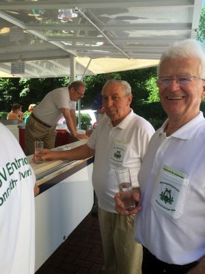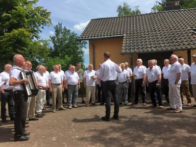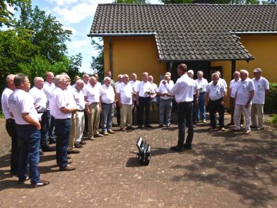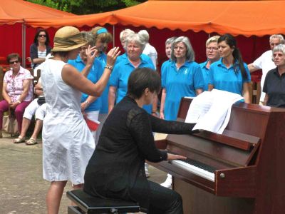 Endlich wieder Sommer beim Honrather SonntagGroßartig wie das Wetter und die vielen Gäste mitspielten und den Honrather Chören ein gelungenes Sommerfest bescherten. Der Gedanke an das Wetterdrama 2014 war schnell verflogen als die 15 Mann starke Swinging Brass Band mitreißende Melodien internationaler Schlager zum besten gab "Boogi for Ever, Down by the riverside, Halleluja, New York, New York" und viele andere Welthits zum Mitsingen gehörten zum zweistündigen Repertoire des Nachmittags. In Variationen "Die Forelle - die launische -, die Kleine Nachtforelle und die Gebirgsforelle" und "Bei mir bist du schön" begeisterten die Sängerinnen und Chorleiterin des Frauenchors Harmonie, Joephine Pilars de Pilar die Zuhörer. Der Männerchor, mit Sängern aus Honrath und Overath, geleitet von Musikdirektor Rolf Pohle stellte fröhlich präsentiert "Ei du Mädchen von Lande, Die Odenwälderin, Cilito Lindo und das Heimat ob Kölsch" vor. Wolfgang Hilleke spiele Akkordeon und sorgte für die musikalische Unterhaltung an der Musikbox. Schon sehr früh waren Gewinner der Tombola mit ihren schönen Gewinnen auf dem Weg zum Pkw um dann sich den vorbereiteten Menue`s und dem Kaffe- und Kuchenangebot zu widmen. Kleine Wettbewerbe für Jung und Alt, das Trambolin und die Geräte des naheliegenden Kindergartens waren bei schönem Wetter die Highlights für Kinder auf dem Festplatz an der Alten Schule Honrath. Die Sängerinnen und Sänger der Honrather Chöre bedanken sich bei allen Helfern und Spendern der Tombola für die Unterstützung der Festveranstaltung. Wenn sie gerne singen wollen, melden sie sich bei den Chören. Wenn sie Verbesserungsvorschläge für die Gestaltung des Festes haben melden sie sich bei den Vorsitzenden der Chöre Frauenchor Harmonie und MGV Eintracht Honrath Lothar und Rita Peters 02206-81834. |