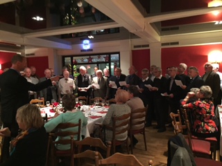 Bei feierlicher Dekoration hatte der Männerchor ins Restaurant Aulerhof in Wahlscheid eingeladen. Alle Sänger mit Sängerfrauen nutzten die Chance während der gemeinsamen Feier zu gemütlicher Unterhaltung. Besonders für die Sängerfrauen bot sich die seltene Gelegenheit sich noch besser kennen zu lernen. Einem kurzen Rückblick des Vorsitzen Lothar Peters zu den musikalischen Veranstaltungen des vergangenen Jahres trat der Chor auch mit bekannten Weihnachtsliedern auf, die auch am 2. Weihnachtstag in Begleitung des Gottesdienstes in der Kirche Honrath gesungen werden. Für viele Gäste der Feier mag das gemeinsame Singen an die Kindheit erinnern, in der die Familie noch näher wohnhaft und gemeinsam feiern konnte. Nicht immer ist das heute noch möglich, da die Familie, unter anderem beruflich bedingt, nicht immer zum Weihnachtsfest zusammen kommen kann und dadurch die Feier zu Hause oft ohne Gesang stattfindet. Geleitet von Musikdirektor Rolf Pohle und Wolfgang Hilleke als Vicechorleiter und Begleiter mit Schifferklavier sang der Chor "Es kam ein Engel", "Als die Welt verloren", "Am Weihnachtsbaum die Lichter brennen", "Weihnachten is, stille Nacht" neben anderen bekannten weihnachtlichen Variationen für die gerührt zuhörenden Gäste. In ironischen witzigen Geschichten der Kneipentheke, zum Verhalten der Sänger, Chorleiter und Vorsitzenden im Chorgeschehen, gelang es Rüdiger Braesicke einige Herren auf die "Schippe" zu nehmen und bekam viel Beifall für den gelungenen umfangreichen Vortrag. Ein erfolgreicher Jahresabschluss endete schließlich in den späten Abendstunden mit einem schmackhaften Weihnachtsmenü.
