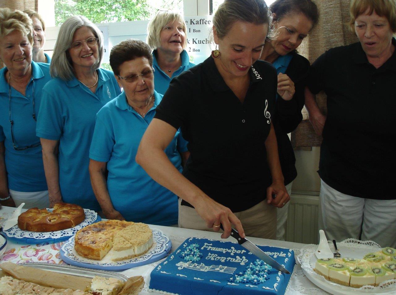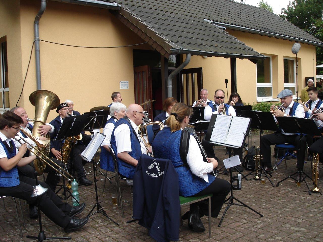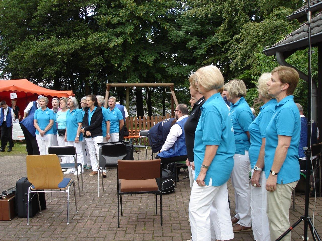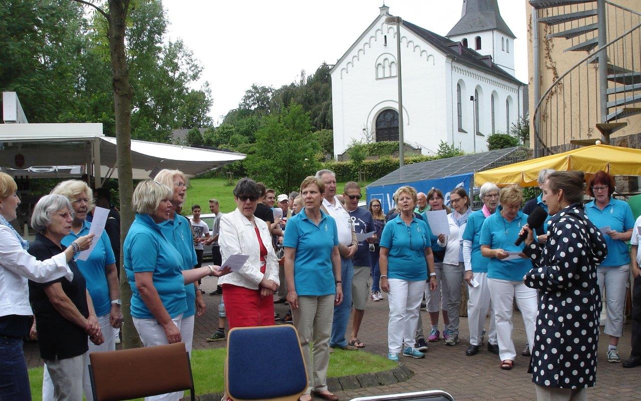 Musikalischer Schnupperkurs auf dem Sommerfest in HonrathVielseitig gestalteter Sonntag bei stabiler Wetterlage Dank der stabilen Wetterlage am Sonntag, dem 26.06.2016 gelang den Chören ein vielseitig gestaltetes Sommerfest. Viele Gäste hatten die Möglichkeit genutzt, den teils sonnigen Nachmittag mit attraktivem Unterhaltungsprogramm zu genießen. Für das leibliche Wohl war mit Mittags- Kaffee- und Kuchenangebot sowie Getränken gesorgt. Schwungvolle Unterhaltung bot die "Swinging Brass-Band" (Leiter Tobias Lehmann) mit bekannten Welthits, und die heimischen Chöre mit rheinischen Stimmungsliedern. "Herrliches Weinland", "Musica zu Ehren", "Das Bier, das macht den Durst erst schön" und das rührende "Honrather Heimatlied" gehörten zu den Vorträgen des MGV Eintracht und Overath mit Chorleiter Rolf Pohle. Einen genialen Einfall hatte die Chorleiterin Josephin Pilars de Pilar mit Frauenchor Harmonie Honrath. In kurzem Solovorspiel gelang es der Solistin und Chorleiterin mit den Festgästen kurze stimmungsvolle Kanons einzustudieren, die dann in vier Stimmen mit Frauenchor und Zuhörern vorgetragen wurden. Allmählich und gerne mitsingend stimmten die Gästen diesem musikalischen Schnupperkurs zu und gaben gebührenden Beifall. "Himmel und Erde müssen vergehn, aber die Musica bleibt bestehen", "Es tönen die Lieder", "Haeven is a wonderful place" und "Hejo spannt den Wagen an" gehörten zu den Darbietungen des Frauenchors. Wolfgang Hilleke unterhielt tagsüber musikalisch mit bekannten Schlagern der CD Musikbox. Das auf dem verkehrsberuhigt liegenden Platz stattfindende Treiben am Kindergarten bot den Gästen mit Kindern Entspannung zum Mitfeiern. Die Anlagen des Kindergartens und die vom Chor zusätzlich anregenden Wettbewerbe wie u.a. Malen, Sackhüpfen, Hüpfburg, Nagelbalken, Entenangeln und Schatzsuche waren für die Kleinen eingerichtet. Die Sängerinnen und Sänger aus Honrath bedanken sich besonders bei den Geschäftsleuten der Stadt Lohmar und Overath für die attraktiven Spenden in der Tombola. Sie danken auch allen Helfern und Gästen, die den Chören bei der Organisation des Festes zur Seite gestanden haben und hoffen, sie auch nächstes Jahr wieder begrüßen zu können. Bilder von Uschi Kämpf |